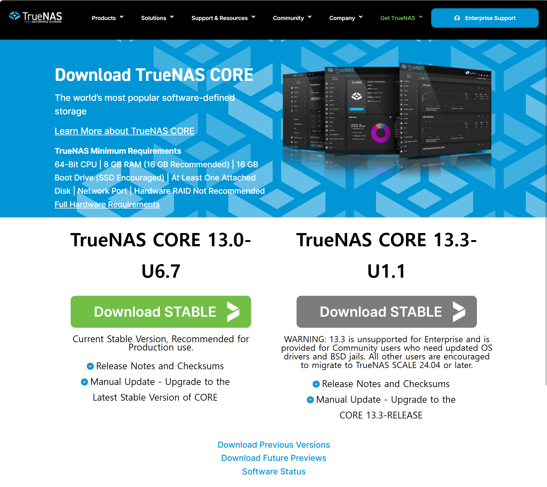 - TrueNAS 공식 웹사이트(https://www.truenas.com/download-truenas-core/)에서 최신 TrueNAS CORE ISO 이미지를 다운로드합니다.