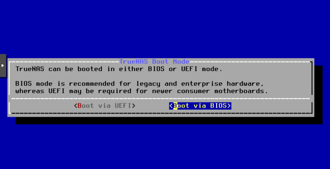 주의: TrueNAS는 듀얼 부팅을 지원하지 않으므로 전용 시스템에 설치하세요.